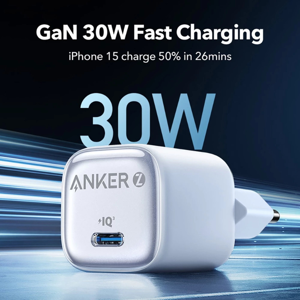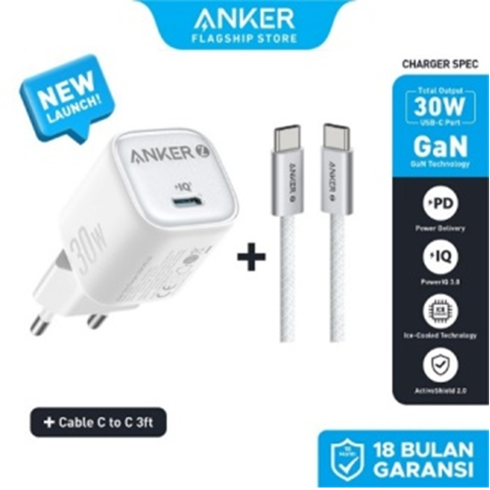 ANKER B2698 Kepala Charger Zolo 30W Charger GaN USB-C + Kabel PD Fast Charging Batok Adaptor Adapter Charger N Series GAN 30W Iphone Smartphone Type-C Type C Tipe C PD Power Delivery Quick Charge PowerIQ3.0 Fast Charging B2698L11 B2698L21