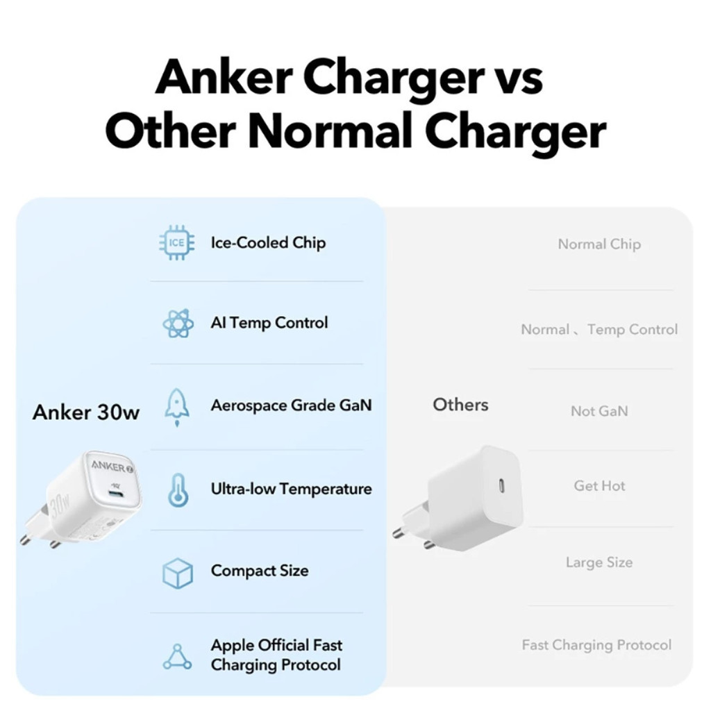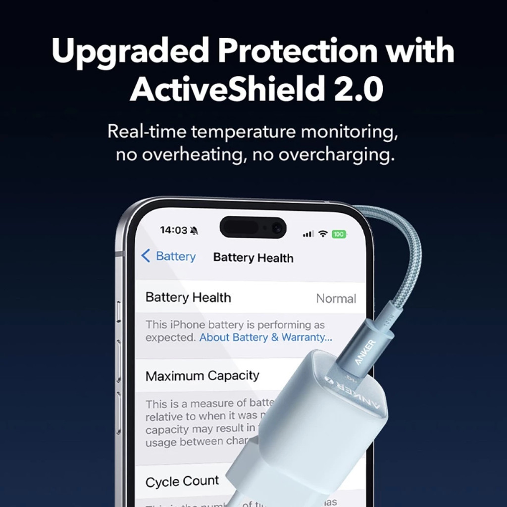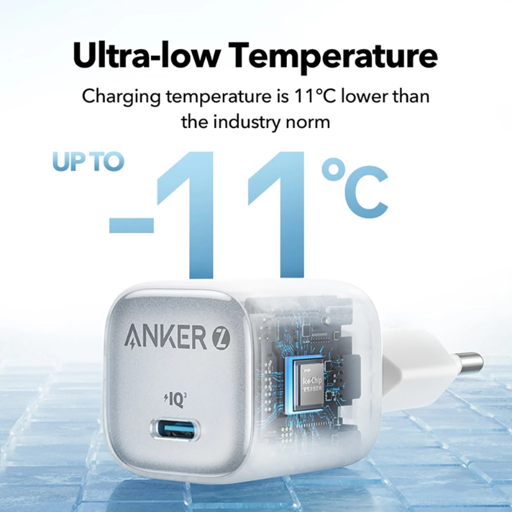 Optimalisasi kontrol Suhu : Dilengkapi dengan pengendalian suhu yang lebih efisien, menjaga suhu hingga 13°C lebih rendah dari standar keselamatan nasional, menjadikannya charger 30W dengan suhu terendah di antara charger Anker.