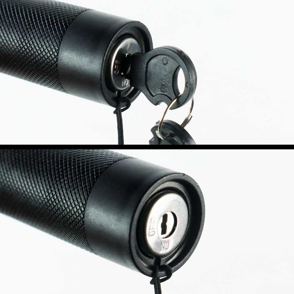 Karena laser ini merupakan benda yang cukup berbahaya untuk anak-anak, maka laser ini memiliki keamanan menggunakan kunci. Kunci ini berfungsi untuk mengunci dan membuka fungsi laser sebelum tombol saklar ditekan. Jika dalam keadaan terkunci, maka laser tidak akan menyala walaupun ada baterai di dalamnya dan saklar ditekan. Sangat efektif untuk menjaga agar tidak dimainkan oleh anak-anak secara sembarangan.