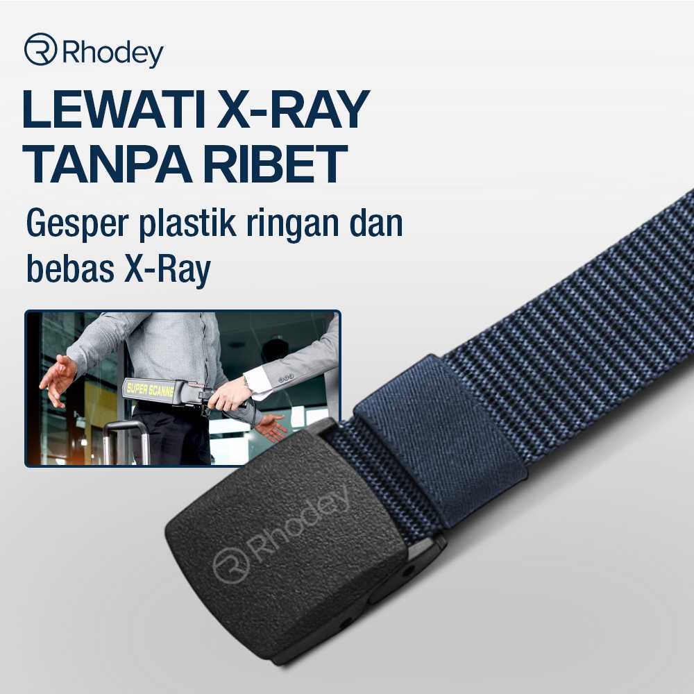 1 x RHODEY Tali Ikat Pinggang Pria Anti Xray Plastik Canvas Non Metal Automatic Buckle