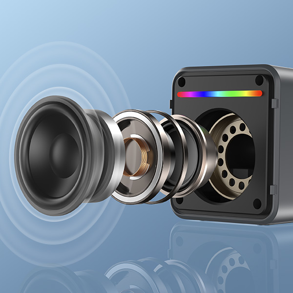 Audio Nirkabel Berkualitas: Menghasilkan suara yang jernih dengan dentuman bass yang terasa solid untuk ukuran speaker mini.