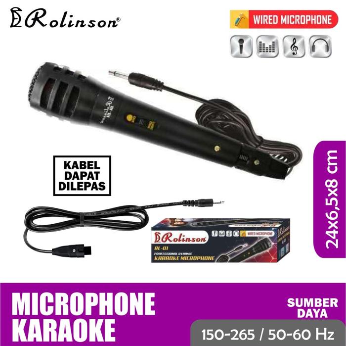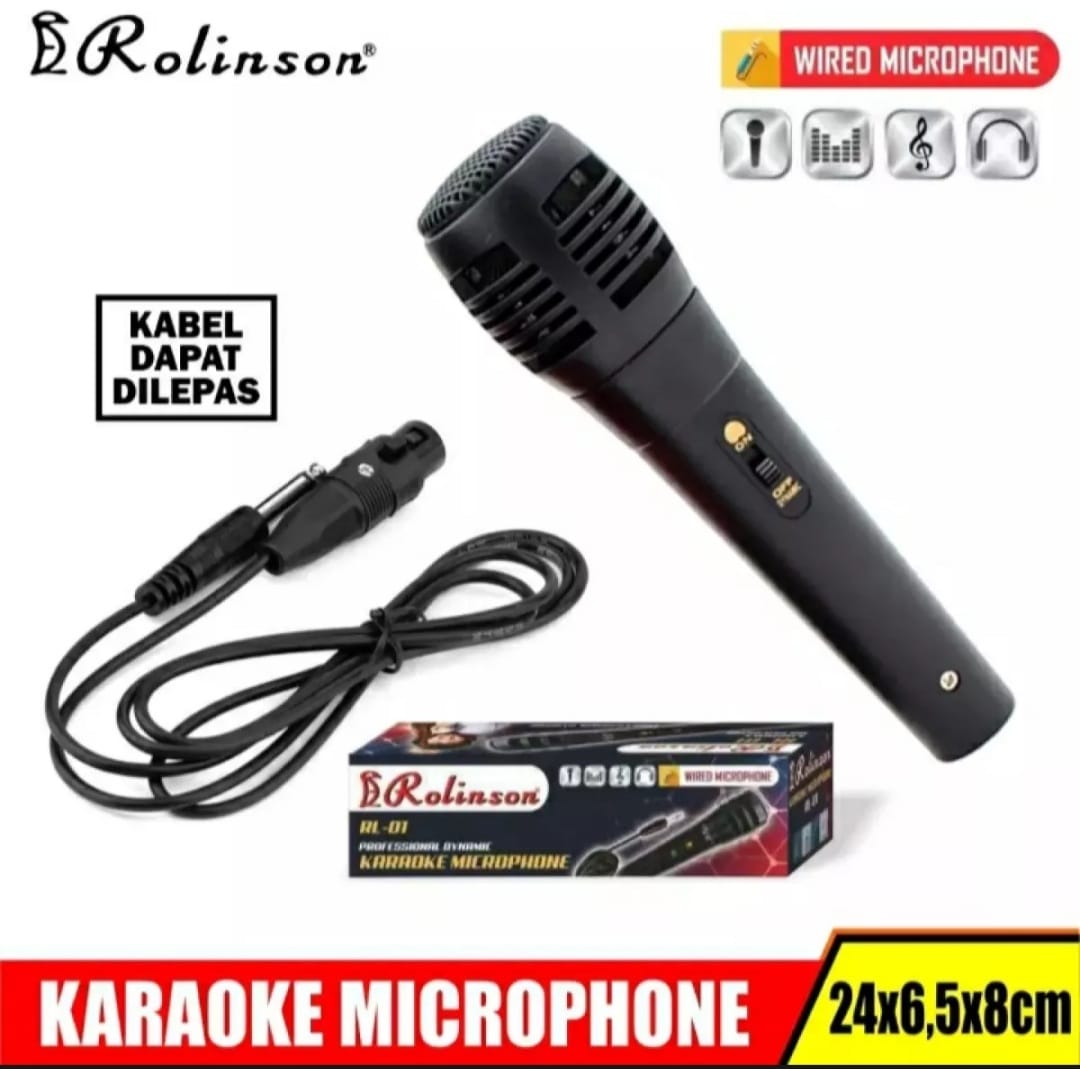 ROLINSON RL-01 Mic Karaoke Mikrofon Kabel Dynamic Microphone High Quality – Mic Vokal Suara Jernih Empuk Kabel Bisa Dilepas Pasang Jack 6.5mm – Mikropon Karaoke Keluarga Pidato Ceramah Meeting Seminar Sekolah Masjid Awet Murah Berkualitas Original