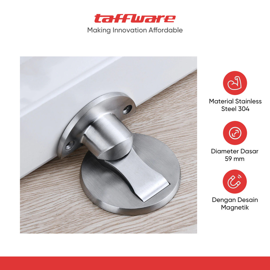 TAFFHOME Penahan Pintu Magnet KAK-883 Magnetic Door Stopper Anti-Collision Ganjal Pintu Magnetik Stainless Steel Anti Karat Pelindung Dinding Penutup Pintu Otomatis Untuk Rumah Kantor Apartemen Hotel Kuat Awet Minimalis Mudah Dipasang Lengkap Baut