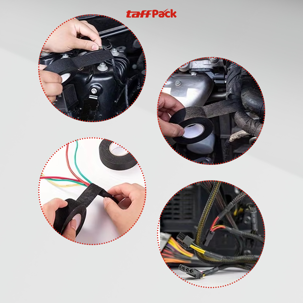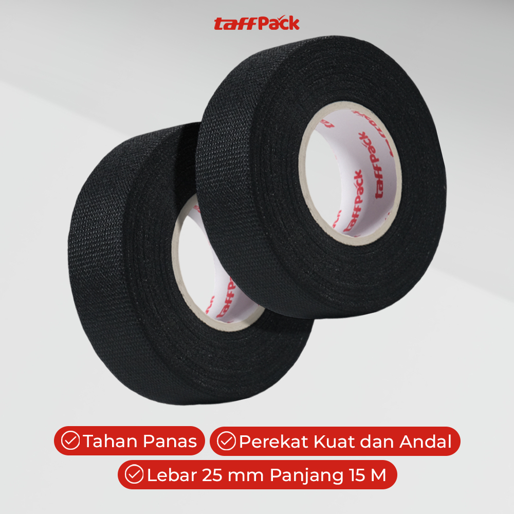TAFFPACK Lakban Kain Adhesive Cloth Tape Heat Resistant 15M 25mm TF11 Isolasi Kabel Mesin Mobil Motor Tahan Panas Anti Bakar Kelistrikan Serat Kain Pembungkus Wire Harness Kualitas Original Pelindung Kabel Dashboard Audio Elektronik Serbaguna Kuat